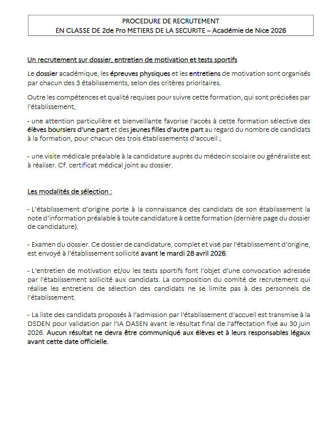 Ouvrage du bâtiment Métallerie Maintenance des systèmes de production connectés Métiers de la logistique Coloration événementiel Métiers de l'électricité et de ses environnements connectés Métiers du froid et des énergies renouvelables Cybersécurité, informatique et réseaux, électronique Métiers de la sécurité CANDIDATURE BAC PRO METIERS DE LA SECURITE RUBRIQUE ORIENTATION